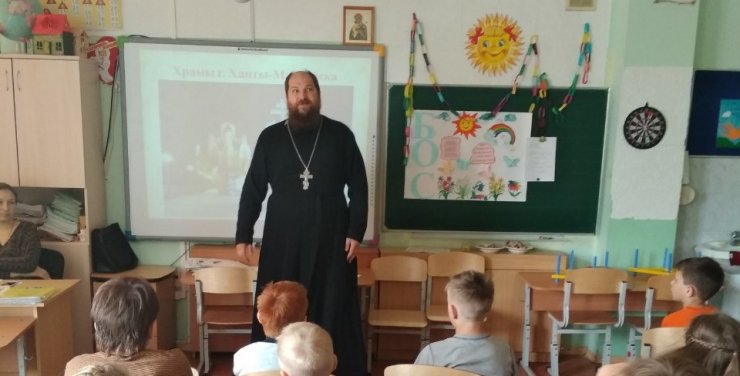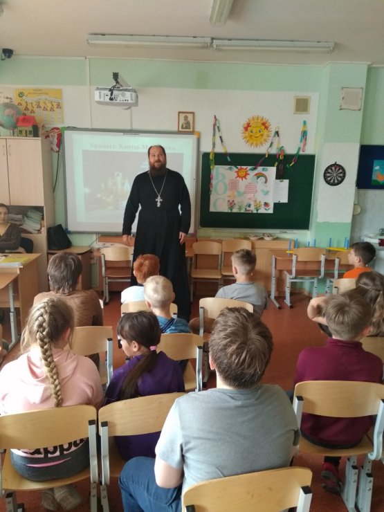 11 июня 2019 г. состоялась встреча заместителя директора по научной работе Духовно-просветительского центра при Ханты-Мансийской епархии, клирика храма иконы Божией Матери "Знамение", иерея Тарасия Борозенца с воспитанниками и воспитателями летнего лагеря при МБОУ СОШ № 8. В ней приняли участие как дети из православной гимназии г. Ханты-Мансийска, так и из других классов.
