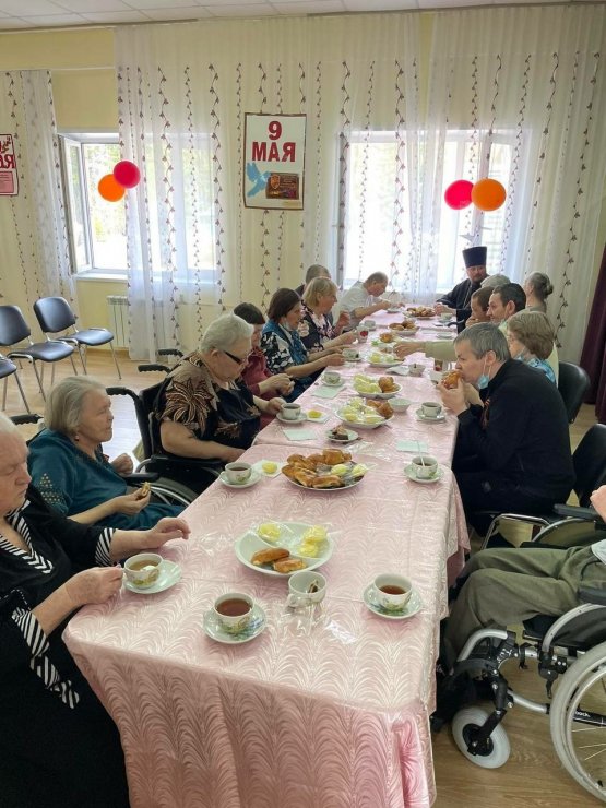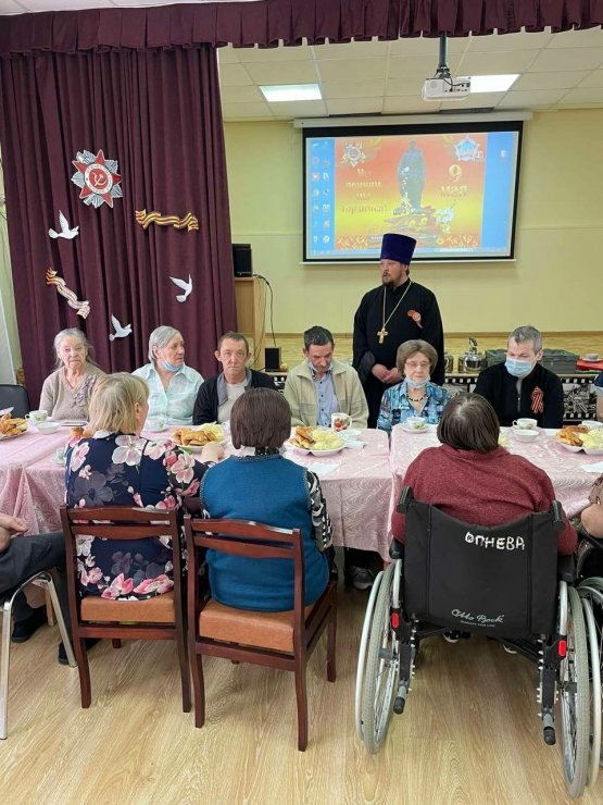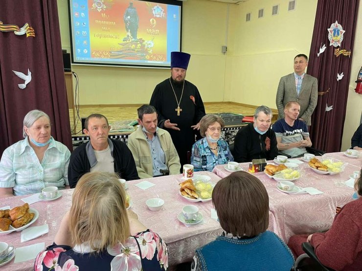 СВЯЩЕННИК ЗНАМЕНСКОГО ХРАМА ПОЗДРАВИЛ С ПРАЗДНИКОМ ПОБЕДЫ ПОДОПЕЧНЫХ ОТДЕЛЕНИЯ-ИНТЕРНАТА Д. ШАПША