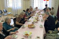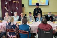 12 мая 2022 года, настоятель храма в честь иконы Божией Матери «Знамение» г. Ханты-Мансийска иерей Леонид Бартков совместно с алтарником храма Шмагайло С. А., посетили «Отделение-интернат малой вместимости для граждан пожилого возраста и инвалидов» в д. Шапша, Ханты-Мансийского района. О. Леонид посетил молельную комнату при интернате, поздравил всех подопечных данного учреждения с праздником Великой Победы, затем вместе с проживающими социального дома пили чай с домашними пирожками. За чаем все вместе пели песни военных времен.