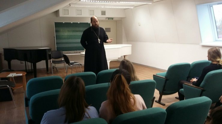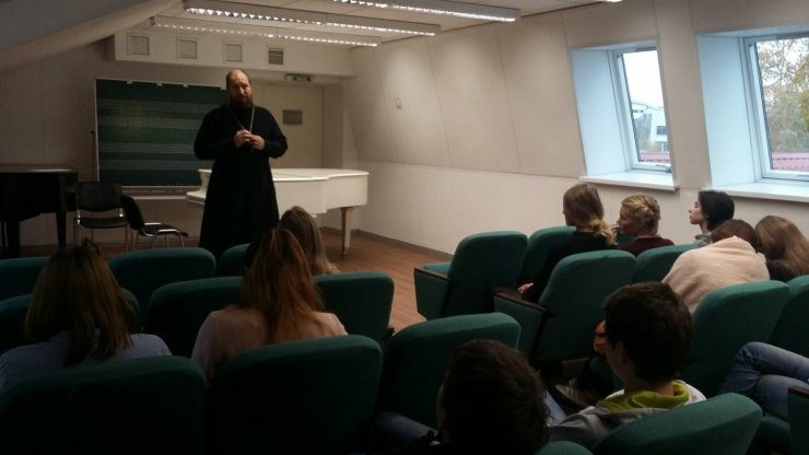 3 октября 2019 г. прошла встреча клирика Знаменского храма, заместителя директора Духовно-просветительского центра Ханты-Мансийской епархии по научной работе, иерея Тарасия Борозенца с учащимися Технолого-педагогического колледжа г. Ханты-Мансийска. На встрече присутствовали студенты трех групп разных курсов, осваивающие специальности "Гостиничное дело", "Документооборот и архивоведение" и "Туризм" в количестве сорока человек.