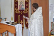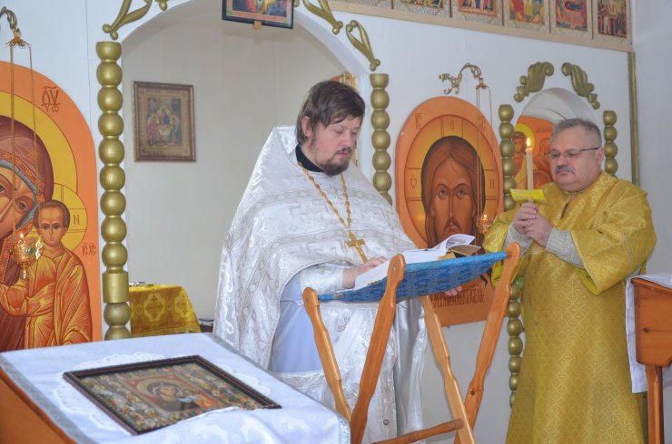 Его Преподобие сопровождали староста храма в честь иконы Божией Матери "Знамение" Скобиоалэ В.В., алтарник храма Вторушин О.В., певчая церковного хора  Новикова И.В.  В ходе поездки отец Леонид  совершил Божественную Литургию,  Таинство Исповеди (4 человека), причастилось 5 человек.
