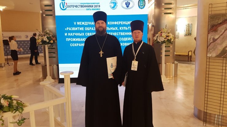1 июня 2019 г., в Международный день защиты детей представители Ханты-Мансийской епархии, заместитель директора Духовно-просветительского центра по научной работе, клирик Знаменского храма г. Ханты-Мансийска, иерей Тарасий Борозенец и настоятель храма прп. Евфимия Великого д. Шапша, иерей Евгений Набоков приняли участие в V Международной конференции "Развитие образовательных, культурных и научных связей с соотечественниками, проживающими за рубежом. Содействие сохранению российской духовной и культурной среды".