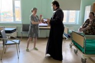 Священнослужители Знаменского храма поздравили пациентов Окружной больницы г. Ханты-Мансийска с праздником Светлой Пасхи