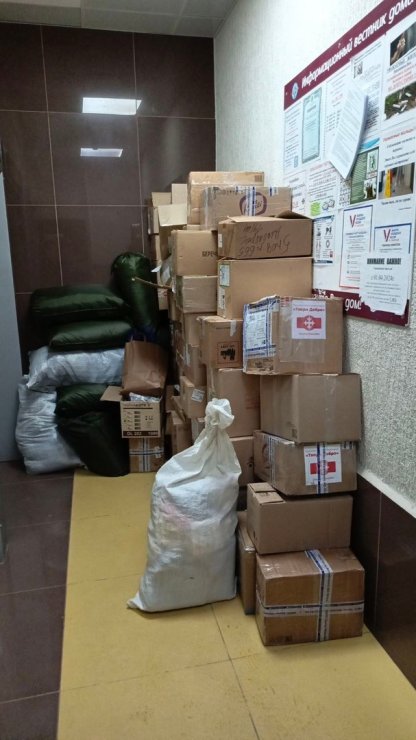 В сообществе трудятся женщины разных возрастов и профессий. Лариса – экономист, возраст почтенный, пенсионный. Привезла целую кучу нужностей для наших бойцов. Футболки, маскхалаты, трусы, полотенца, антидроновые одеяла, плащ-палатки, балаклавы и прочее.