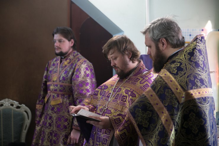 Его Высокопреосвященству сослужили: благочинный Ханты-Мансийского благочиния протоиерей Сергей Кравцов, настоятель храма иерей Леонид Бартков, секретарь управляющего епархией игумен Антоний (Кирпичев), духовенство храма. Диаконский чин возглавил диакон Даниил Матвеев.
