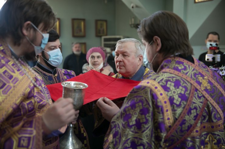 На сугубой ектении были возглашены молитвенные прошения об избавлении от коронавирусной инфекции.