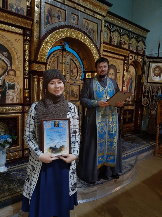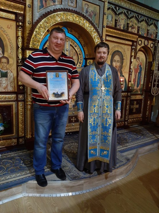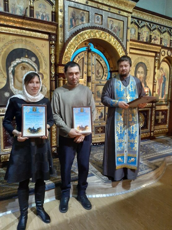 Накануне, 9 декабря состоялось Всенощное Бдение, по окончании которого, настоятель храма иерей Леонид Бартков вручил благодарственные письма прихожанам храма: Даутову Ивану, Креминой Виктории, супругам Гелета Василию и Анастасии.