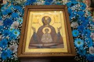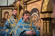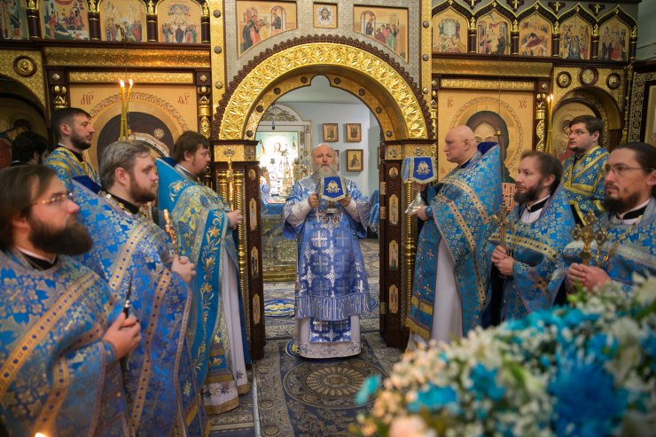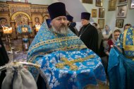 «Дорогие отцы, братья и сёстры, позвольте сердечно всех поздравить с праздником иконы Божией Матери «Знамение», с престольным днём этого святого храма! Икона «Знамение» очень почитаема в нашем крае, её явление отмечено не только в Абалаке, но мы знаем, что по пути следования на Север, в 19 веке, паломники с ней остановились в Покровском храме села Самарово, месте нынешнего Ханты-Мансийска. Около 100 лет пребывала здесь икона, Матерь Божия в своём образе «Знамение» избрала это место. После разрушения храма и исчезновения иконы, возрождение православия в Ханты-Мансийске началось именно с благословения Божией Матери- строительства храма, посвященного Знаменской иконе Богородицы. Мы сегодня благодарны Господу Богу и Царице Небесной, за то, что имеем здесь храм образа Пресвятой Богородицы «Знамение», и она всех нас покрывает, всем приходящим к ней желает спасения. Всех вас, мои дорогие, благодарю за общие молитвы, поздравляю с престольным праздником, благодарю Вас, владыка Фотий, что прибыли сегодня, в престольный день, в день рождения нашего округа, разделить с нами радость молитвы!»