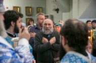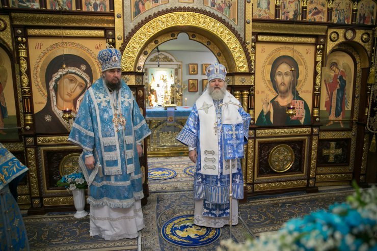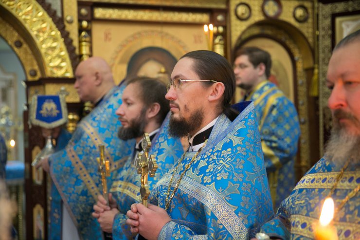 Владыкам сослужили: благочинный Ханты-Мансийского благочиния, протоиерей Сергий Кравцов, настоятель храма, иерей Леонид Бартков; заведующий епархиальной канцелярией, иерей Сергий Нагорный; секретарь управляющего епархией иеромонах Антоний Кирпичев; иерей Николай Щерба, иерей Евгений Набоков, духовенство храма. Диаконский чин возглавил диакон Даниил Матвеев.