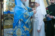 Настоятель Знаменского храма, иерей Леонид Бартков поблагодарил Его Высокопреосвященство за архипастырский визит в день престольного праздника, за радость совместной молитвы, пожелал владыке здравия и долголетия на ниве служения Церкви Христовой.