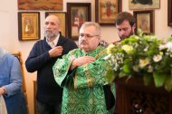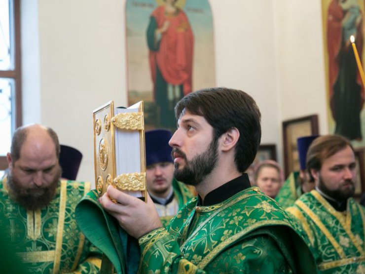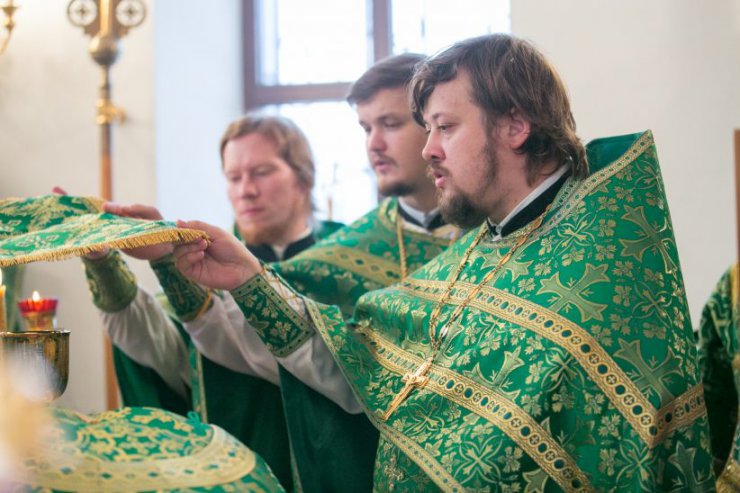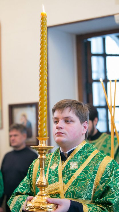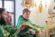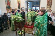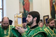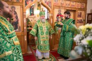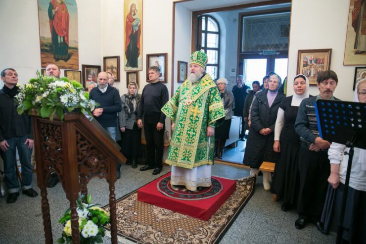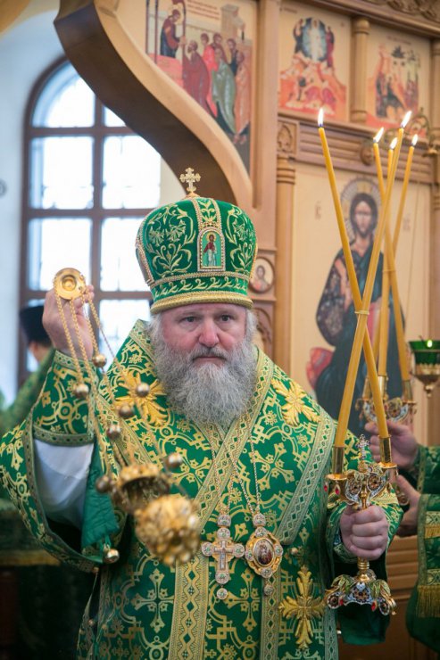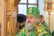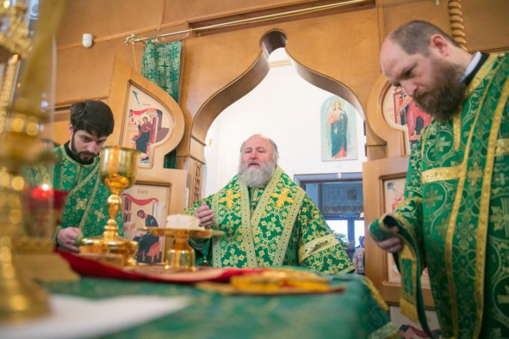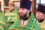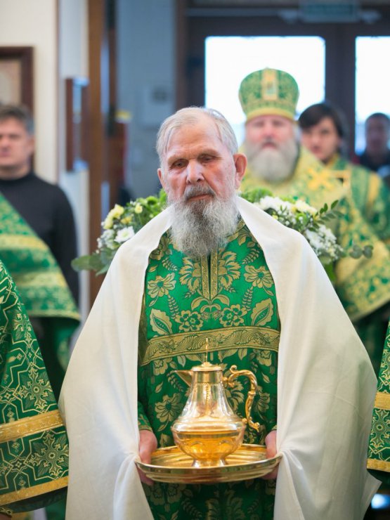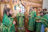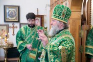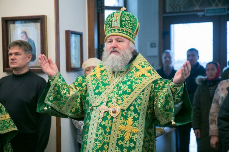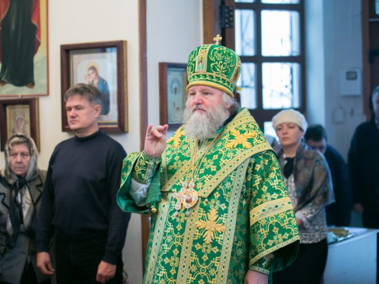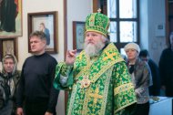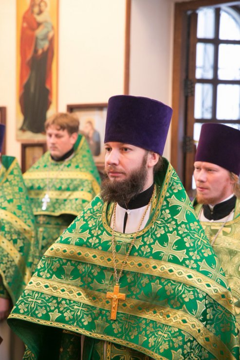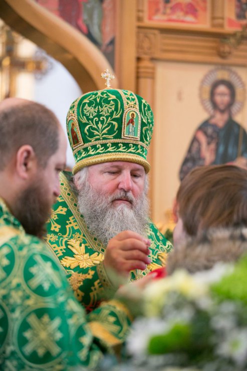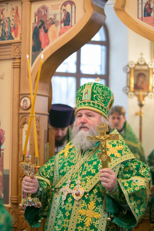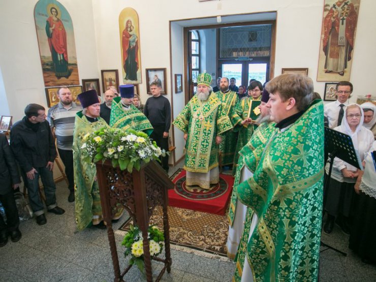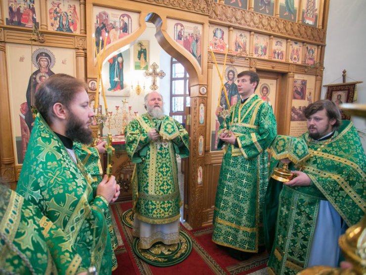 Его Высокопреосвященству сослужили: заведующий епархиальной канцелярией, иерей Нагорный Сергий, настоятель храма, иерей Бартков Леонид, иерей Кизин Евгений, иерей Набоков Евгений, иерей Мемячкин Константин, диакон Матвеев Даниил, диакон Борозенец Тарасий.
