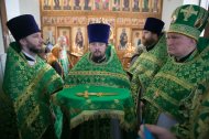 Его Высокопреосвященству сослужили: благочинный Ханты-Мансийского благочиния, протоиерей Сергей Кравцов; заведующий епархиальной канцелярией, иерей Сергий Нагорный; настоятель храма, иерей Леонид Бартков; секретарь управляющего епархией иеромонах Антоний Кирпичев; иерей Тарасий Борозенец, диакон Даниил Матвеев.
