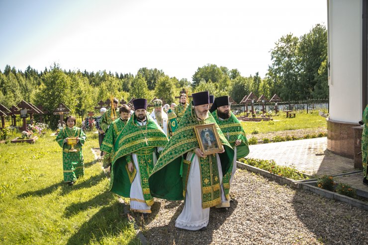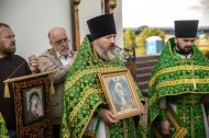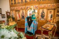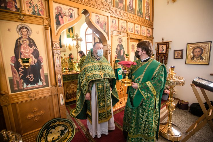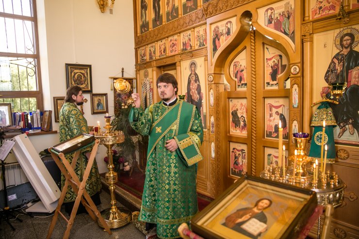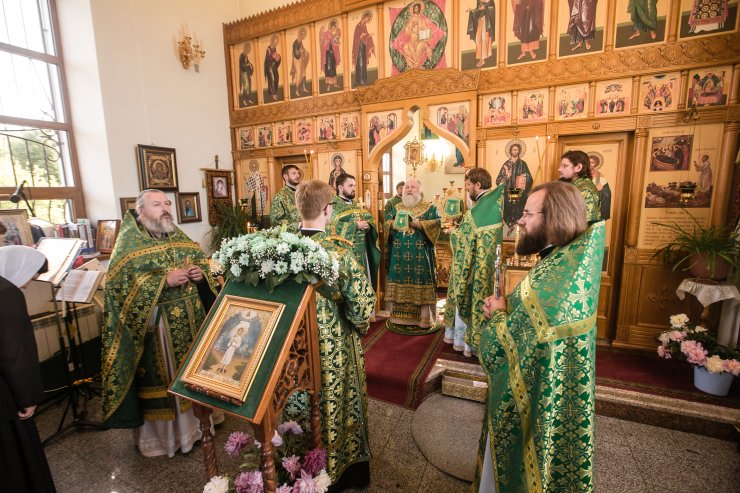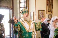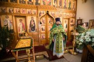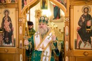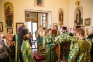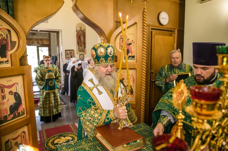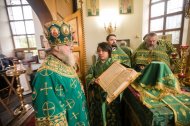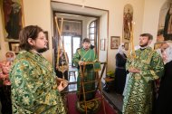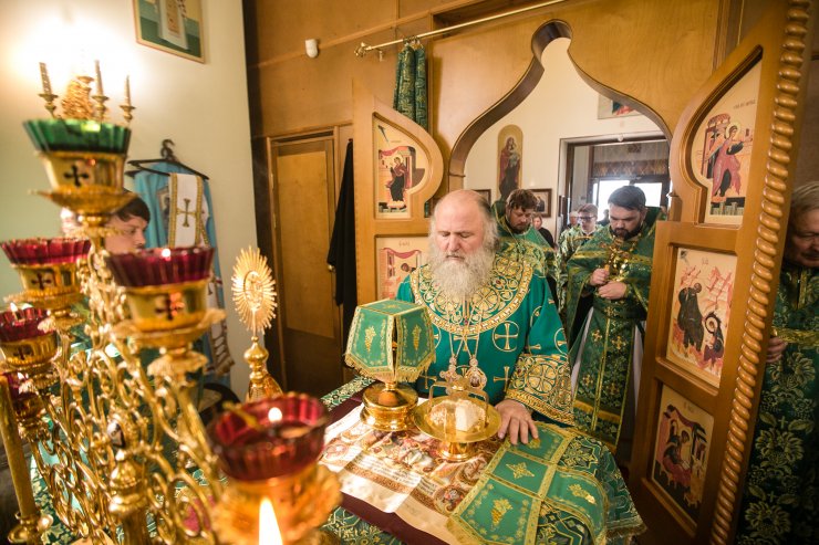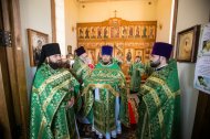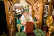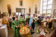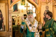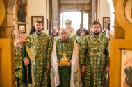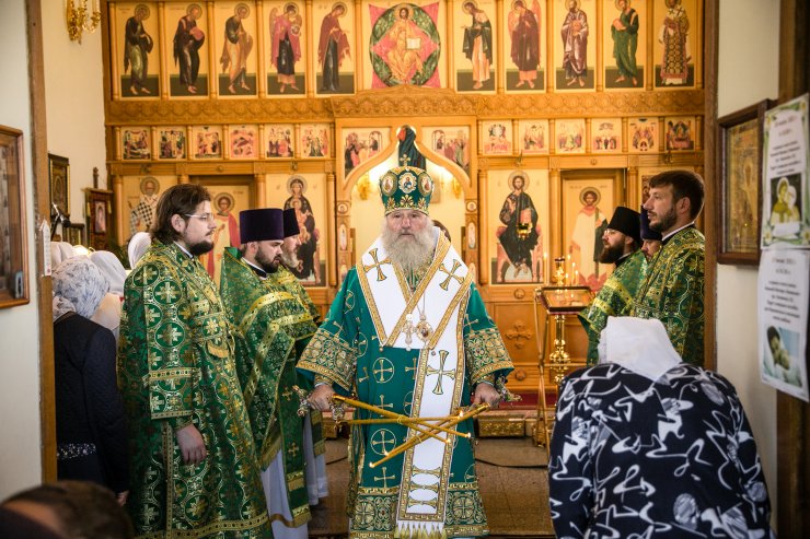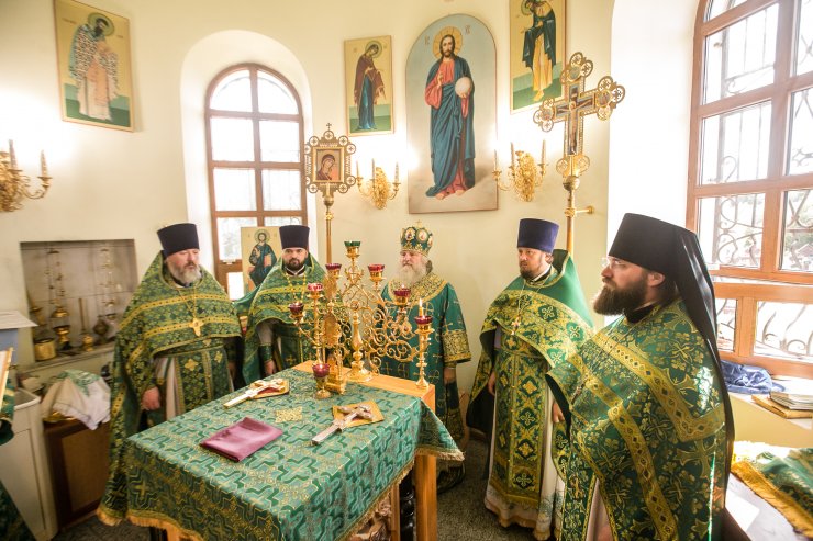 Его Высокопреосвященству сослужили: настоятель храма иерей Леонид Бартков, секретарь управляющего епархией игумен Антоний (Кирпичев), иерей Димитрий Губанищев, иерей Константин Мемячкин, диакон Антоний Долгушин.