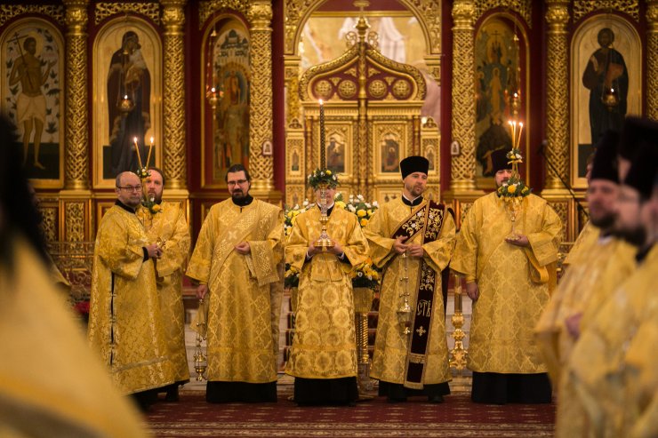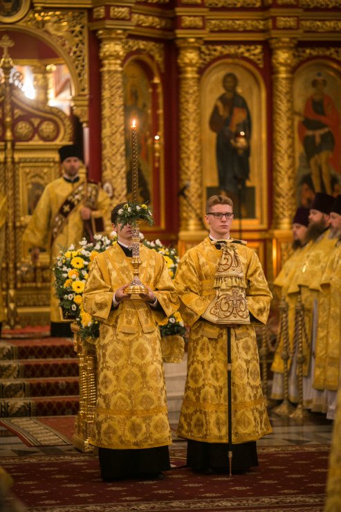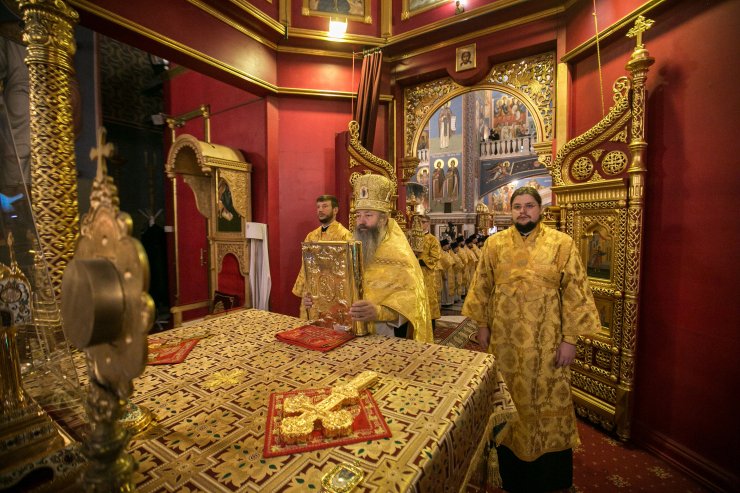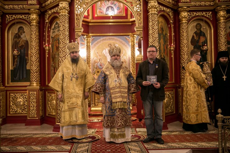 Его Высокопреосвященству сослужили: епископ Югорский и Няганский Фотий, духовенство Ханты-Мансийской епархии. Диаконский чин возглавил клирик Тихвинской епархии протодиакон Георгий Стефанов.