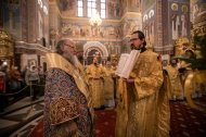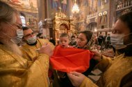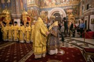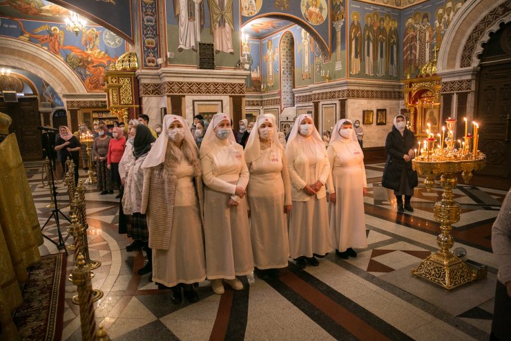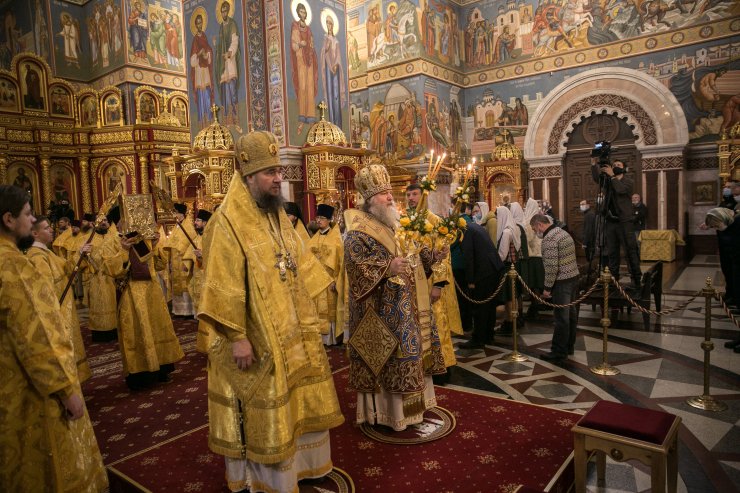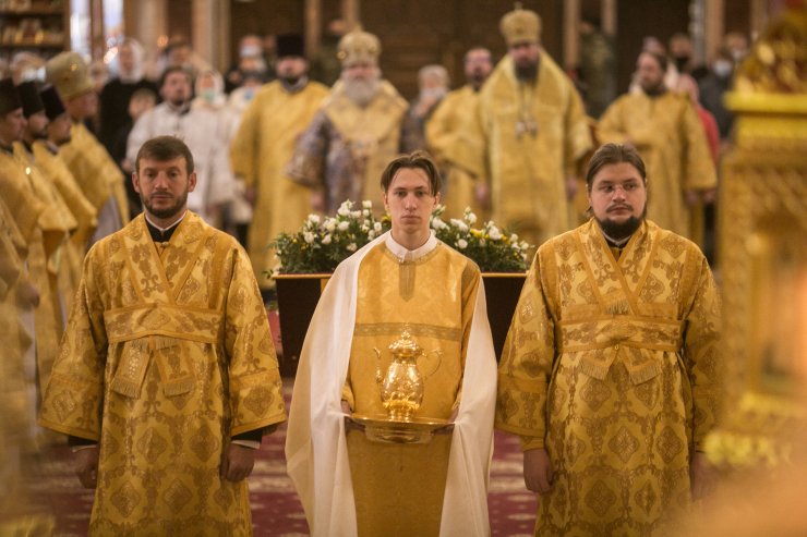 На сугубой ектении были вознесены молитвенные прошения об избавлении от коронавирусной инфекции, а также об укреплении врачей: «Призри, Владыко Человеколюбче, на жертвенный подвиг врачей наших, посли им здравие непоколебимое, силу и крепость духа, мудрость к совершению трудов во благо народа нашего и сотвори чрез них исцеление страждущим рабом Твоим, прилежно молим Ти ся, скоро услыши и помилуй».