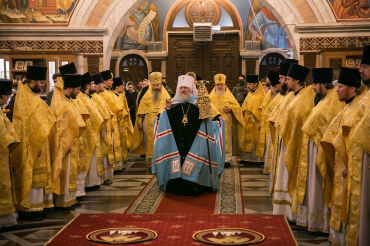 После сугубой ектении владыка вознес молитву, во время распространения вредоносного поветрия чтомую.