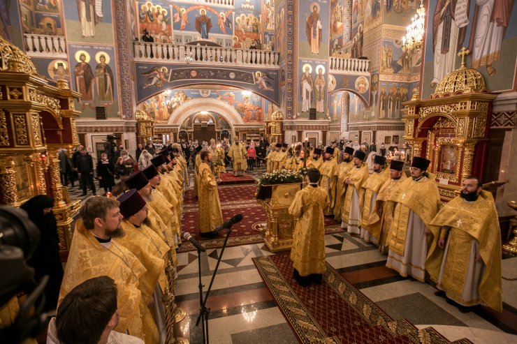 Мало кто знал о святителе Нектарии, когда была образована наша епархия, и было принято решение перенести часть главы святителя в наш кафедральный собор и установить святительский день нашей епархии. У нас появился святитель, который помогает нам, и мы его более узнали. И та частица главы его, которая присутствует в нашем соборе, особенна тем, что ему всегда можно пошептать на ушко о своих заботах и просьбах. Слава Богу, что Господь нам дал эту частицу мощей как утешение, как помощь и покровительство святителя Нектария!