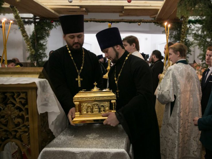 Перед началом Богослужения в храм был принесен ковчег с частью мощей Вифлеемских младенцев, переданный в дар Ханты-Мансийской епархии для женского монастыря иконы Божией Матери «Умиление» г. Сургута.