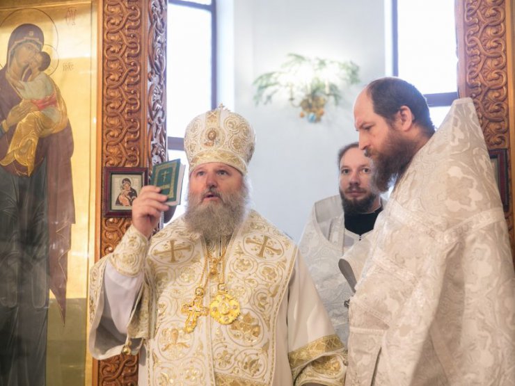За Божественной Литургией митрополит Павел рукоположил диакона Борозенец Тарасия в сан иерея.
