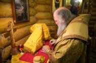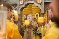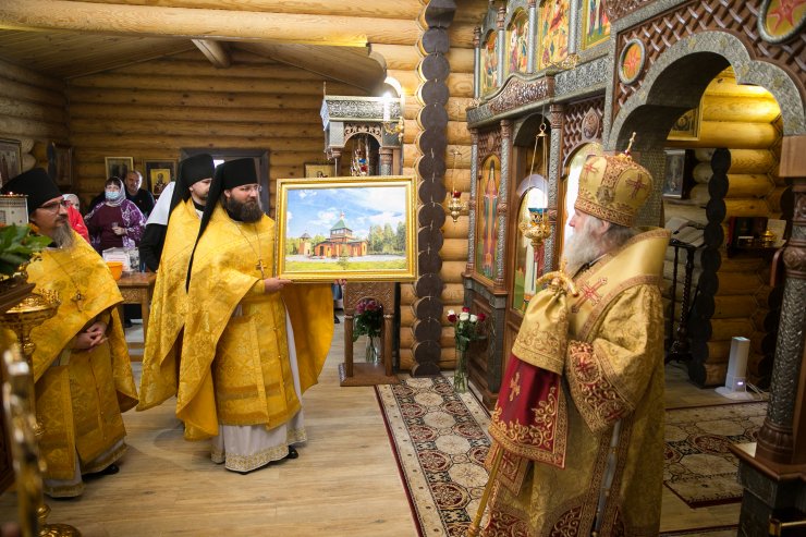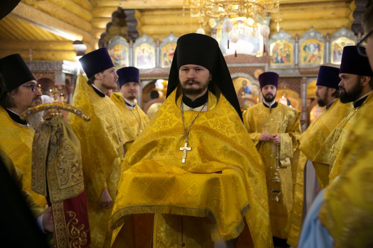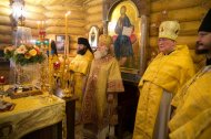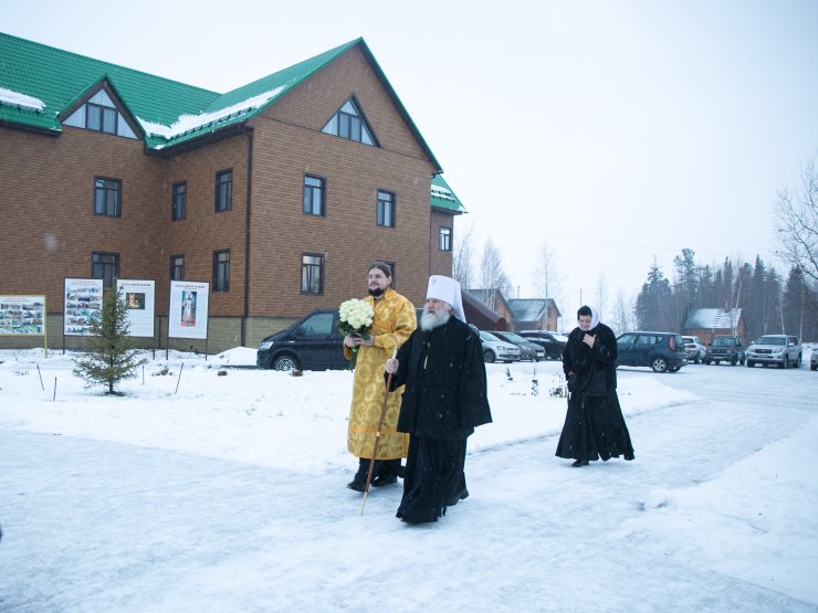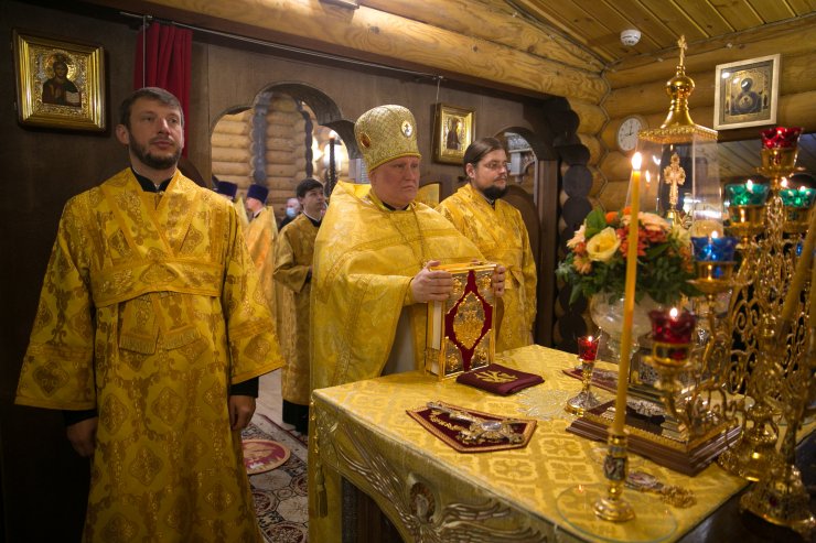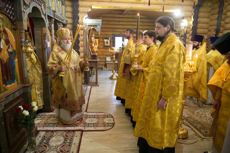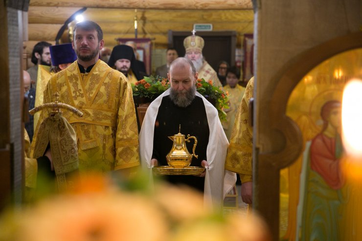 Его Высокопреосвященству сослужили: благочинный Ханты-Мансийского благочиния протоиерей Сергей Кравцов; настоятель монастыря игумен Антоний (Кирпичев), заведующий епархиальной канцелярией иерей Александр Петюр, иерей Димитрий Губанищев, иерей Леонид Бартков, иерей Евгений Кизин, братия подворья в священном сане. Диаконский чин возглавил диакон Даниил Матвеев.