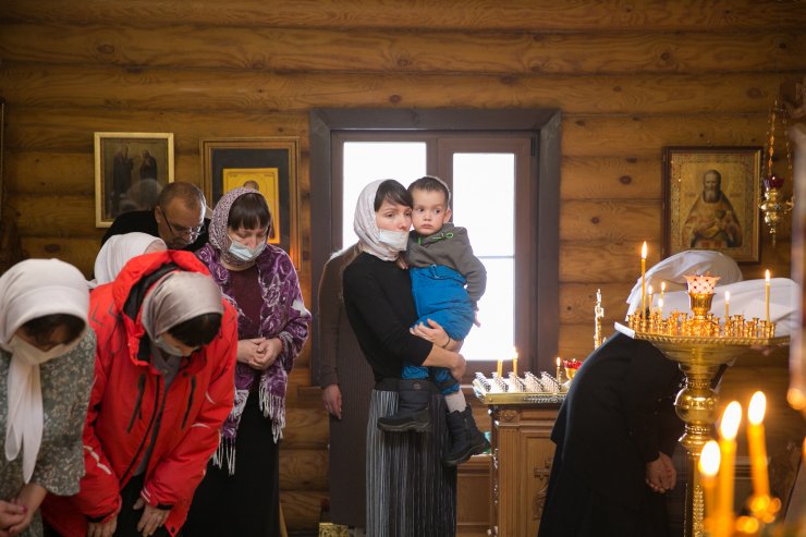 На сугубой ектении были вознесены молитвенные прошения об избавлении от коронавирусной инфекции, а также об укреплении врачей: «Призри, Владыко Человеколюбче, на жертвенный подвиг врачей наших, посли им здравие непоколебимое, силу и крепость духа, мудрость к совершению трудов во благо народа нашего и сотвори чрез них исцеление страждущим рабом Твоим, прилежно молим Ти ся, скоро услыши и помилуй».