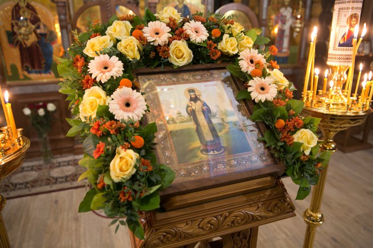 «Дорогие отцы, братья и сестры! Дорогой игумен Антоний с братией святыя обители, позвольте в этот особый день поприветствовать всех, кто пришёл на праздник разделить радость престольного дня нашей мужской обители и вознести свои горячие молитвы к небесному покровителю обители — святителю Димитрию Ростовскому, который находится в лике Сибирских святых. Из жития его известно, что он не доехал до Сибири по состоянию своего здоровья, но он всё время молился о пастве той земли, на служение которой он был назначен. Сегодня, отмечая его святую память, как небесного покровителя нашей обители, мы возносим молитвы и просьбы, чтобы он был предстателем у престола Божьего за каждого из нас и конечно же за братию обители, укрепляя их в монашеском подвиге, в делании спасения не только душ своих, но и всех, прибывающих в эту святую обитель, как к спасительному роднику. Монастыри всегда были лечебницами духовными, и сегодня имея часть десницы в обители, присутствие святых мощей — для нас это великий дар и вспоможение и в нашей жизни, и особенно в жизни монашествующих этой обители.