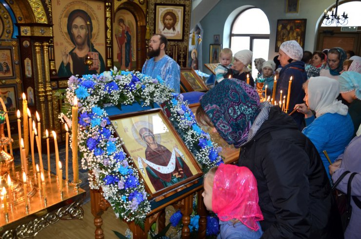 В этот день, Неделю 20-ю по Пятидесятнице, праздника Покрова Пресвятой Владычицы нашей Богородицы и Приснодевы Марии, настоятель храма иерей Леонид Бартков совершил Божественную Литургию, перед которой состоялось малое освящение воды, в храме в честь иконы Божией Матери «Знамение» г. Ханты-Мансийска.