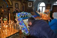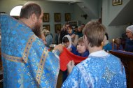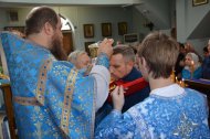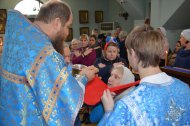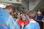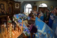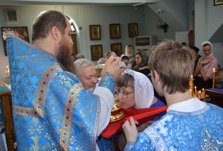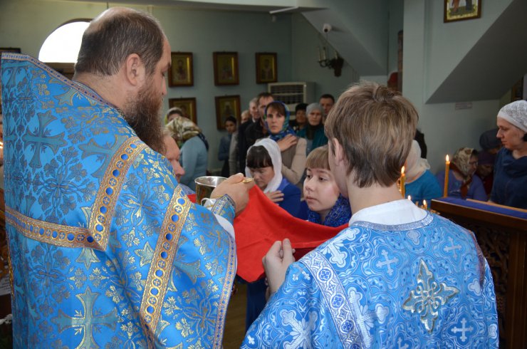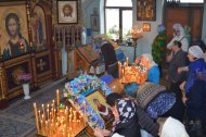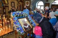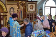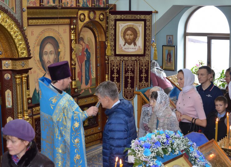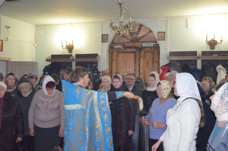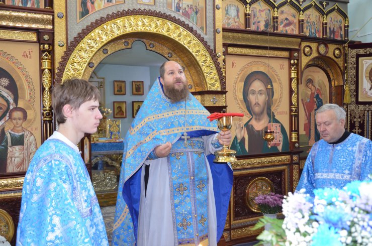 Его преподобию сослужили клирики храма иерей Константин Мемячкин, иерей Тарасий Борозенец. Служба в храме прошла в присутствии большого количества прихожан (около 130 человек).