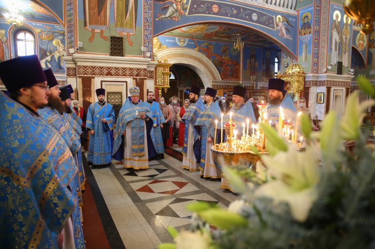 Богослужение возглавил благочинный Ханты-Мансийского благочиния протоиерей Сергий Кравцов, диаконский чин возглавил диакон Даниил Матвеев.