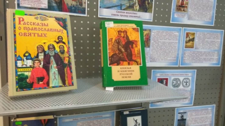 На выставке  представлены издания об уже названных, а также и других прославленных защитниках отечества, полководцах, политических лидерах, которые жили и совершали подвиги в разное историческое время. С помощью материалов выставки мы  хотим показать преемственность времён, – от образования Древней Руси до Великой Отечественной войны – утверждающих, прежде всего, незыблемость православной веры, бесценного дара, переданного нам предками. И как когда-то русские ратники обращались к заступничеству святых воинов, так и их потомки в Великой Отечественной войне 1941-1945 гг. отстояли родную землю благодаря своему мужеству и покровительству небесных защитников.