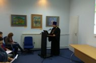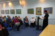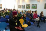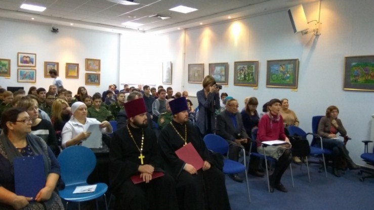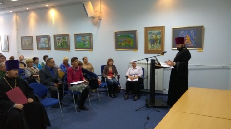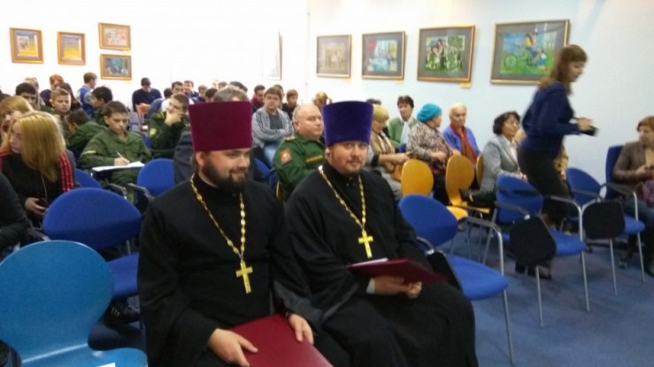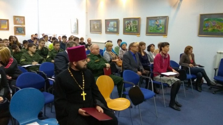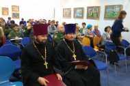 В открытии выставки приняли участие священнослужители, историки,  писатели, работники образования и культуры г. Ханты-Мансийска. Председатель отдела социального служения и благотворительности Ханты-Мансийской епархии иерей Леонид Бартков выступил с сообщением о житии святого великомученика и победоносца Георгия , председатель отдела религиозного образования и катехизации Ханты-Мансийской епархии иерей Димитрий Губанищев рассказал о традициях русского воинства в тесной связи с церковной историей, глава военно- патриотического Георгиевского клуба Вадим Акимов поделился опытом создания костюмированных реконструкций великий исторических сражений и подвиге святого Александра Невского. Участники встречи, большинство которых составляли школьники и воспитанники кадетских классов, узнали и о славном доблестном пути великих полководцев Димитрия Донского и Федора Ушакова, прославленного в лике святых как Феодор Санаксарский. По традиции участникам мероприятия священники подарили святое Евангелие.