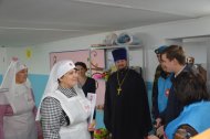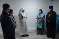 Сестра милосердия Ирина Колычева провела для гостей ознакомительную экскурсию. Официальная часть завершилась вручением благодарственных писем и молебном на начало благого дела. Приятным бонусом праздничного утра стало чаепитие.