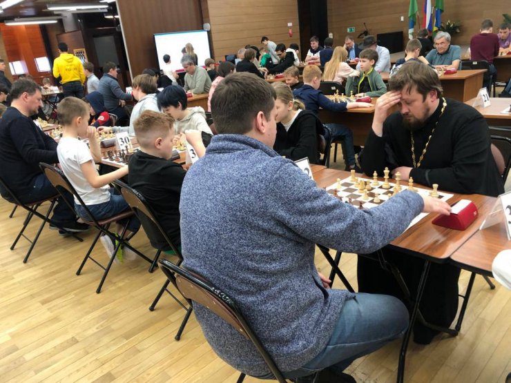 Приветствовал участников председатель социального служения и благотворительности Ханты-Мансийской епархии, настоятель храма в честь иконы Божией Матери «Знамение» г. Ханты-Мансийска иерей Леонид Бартков, который также принял участие в шахматном турнире в качестве игрока.