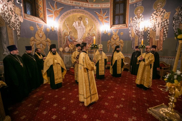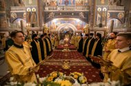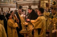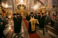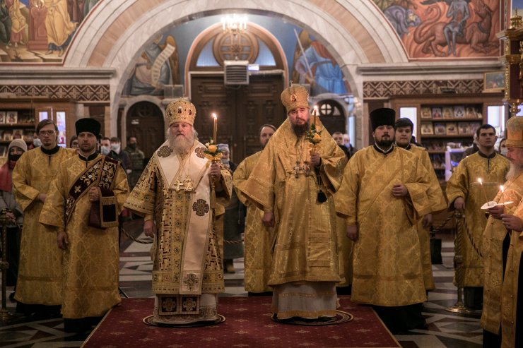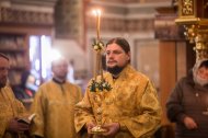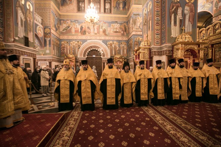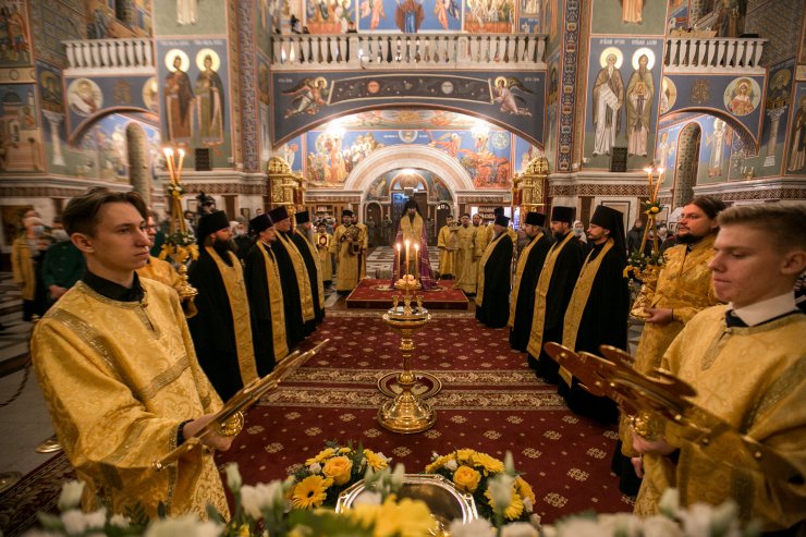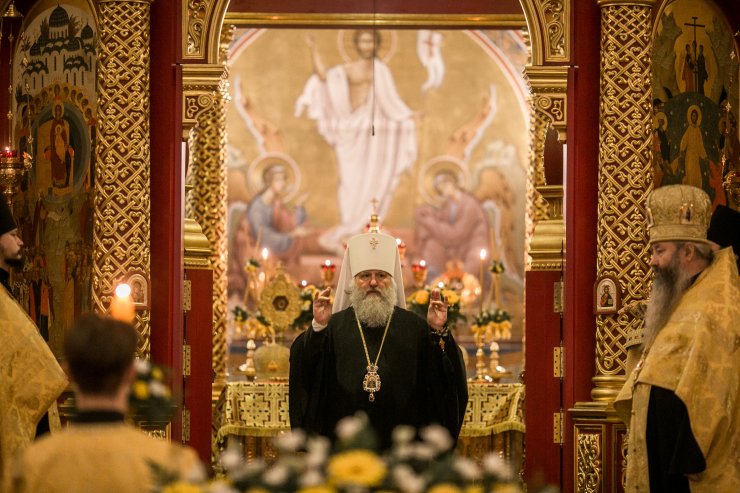 Его Высокопреосвященству сослужили: епископ Югорский и Няганский Фотий, духовенство Ханты-Мансийской епархии. Диаконский чин возглавил клирик Тихвинской епархии протодиакон Георгий Стефанов.