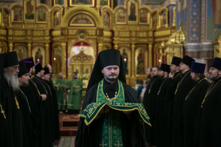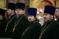 Богослужебные песнопения исполнили: Архиерейский хор Воскресенского кафедрального собора (регент — Сатрапинская Э. Н.) и хор духовенства епархии (регент —иерей Григорий Белянин).