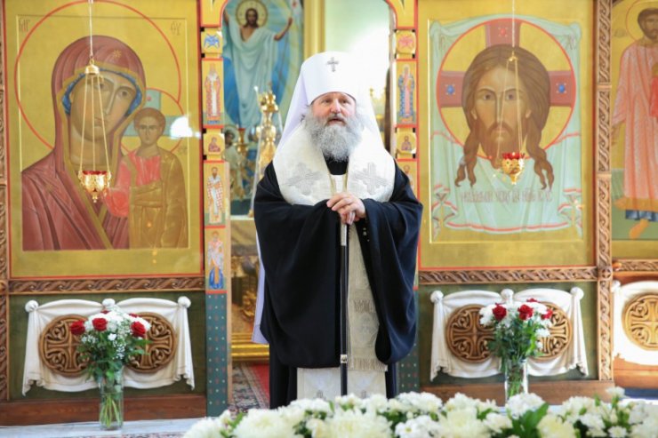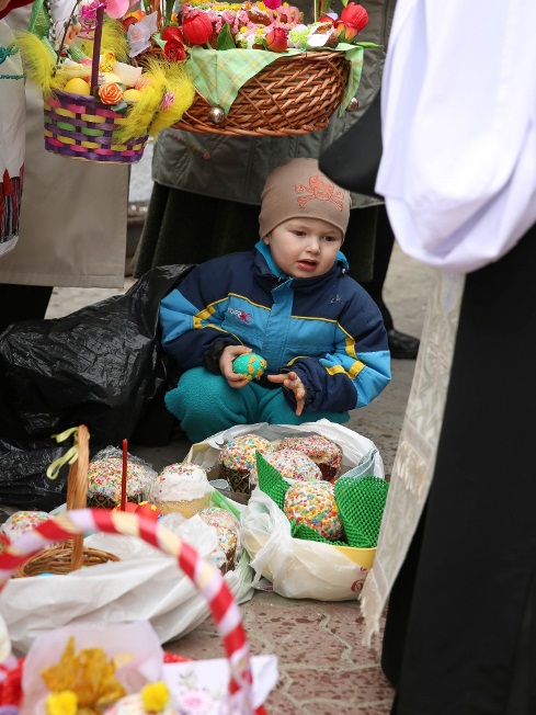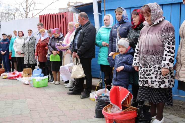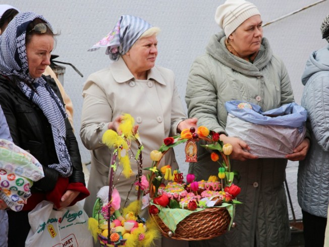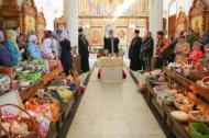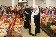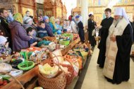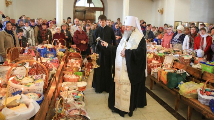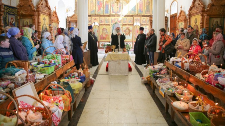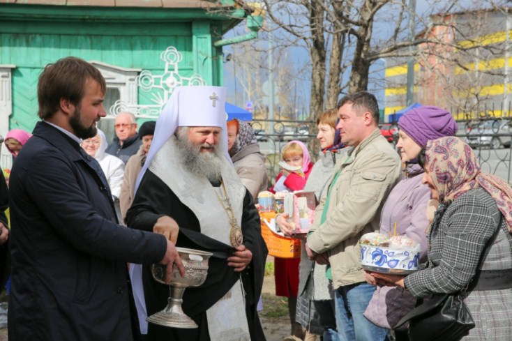 В храме в честь Покрова Божией Матери и в храме в честь иконы Божией Матери «Знамение» митрополит Павел приветствовал всех собравшихся и освятил пасхальную снедь.
