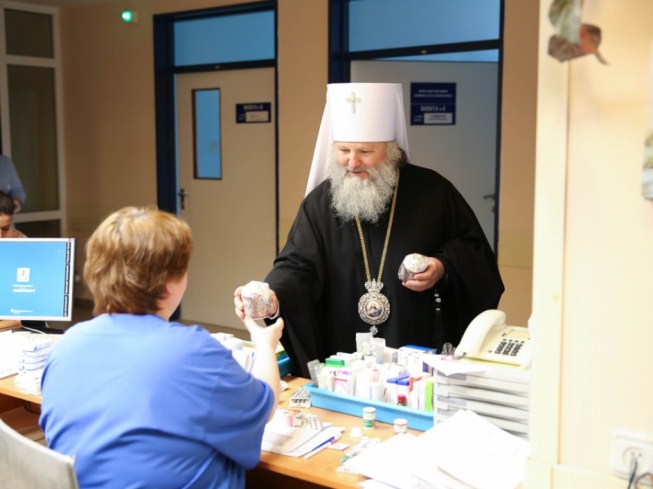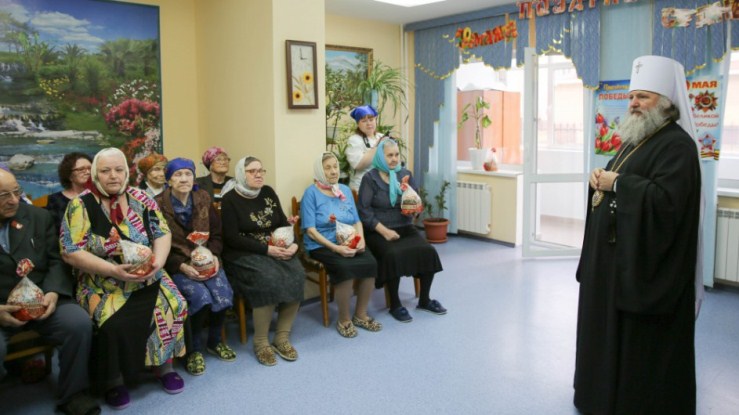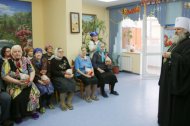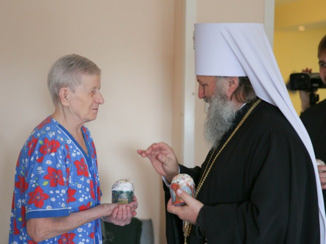 Также в этот день владыка посетил окружную поликлинику г. Ханты-Мансийска и социальный дом для одиноких престарелых «Ветеран», где поздравил собравшихся с наступающим Христовым Воскресением.