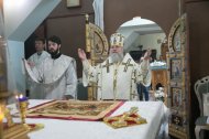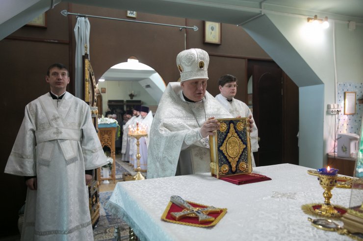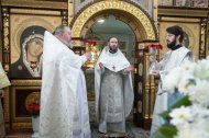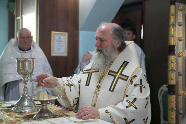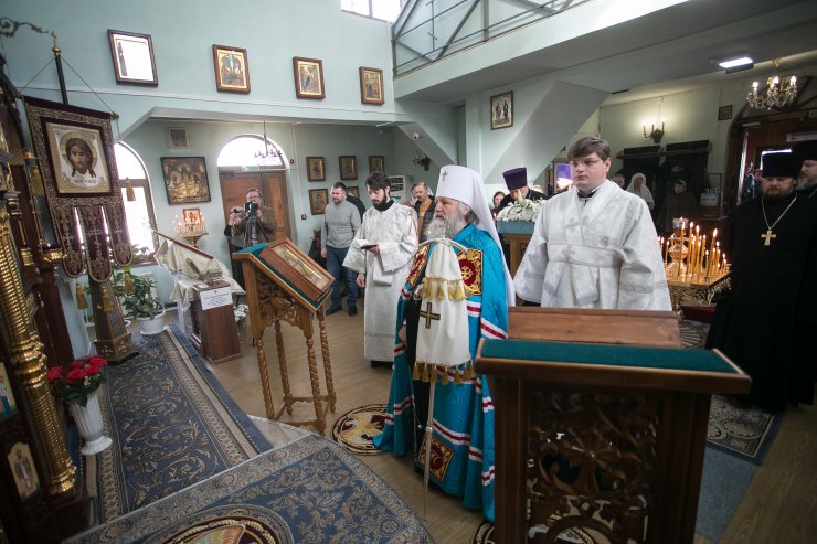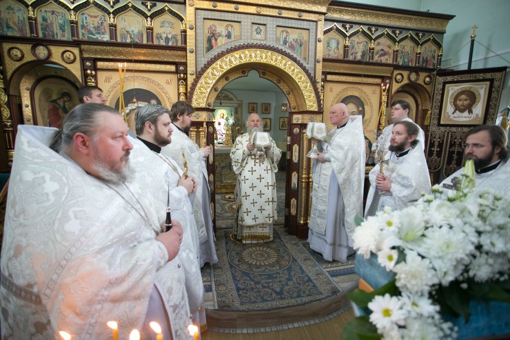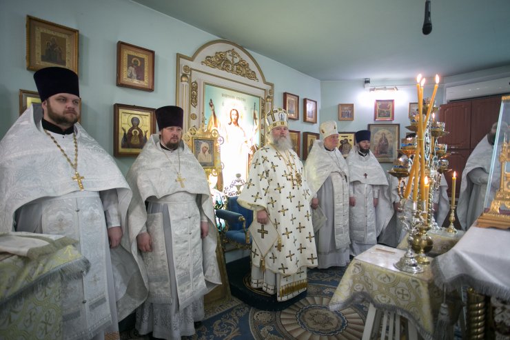 Его Высокопреосвященству сослужили: благочинный Ханты-Мансийского благочиния, протоиерей Сергий Кравцов, настоятель храма, иерей Леонид Бартков; заведующий канцелярии иерей Сергий Нагорный; референт Управляющего епархией иеромонах Антоний Кирпичев, диакон Даниил Матвеев.