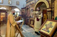 клирик Знаменского храма иерей Андрей Зотов в сослужении иерея Тарасия Борозенца и диакона Алексия Полянцева совершил Божественную Литургию.