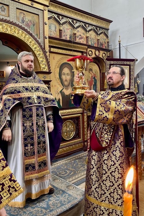 В Неделю 3-ю Великого поста духовенством Знаменского храма совершена Божественная Литургия