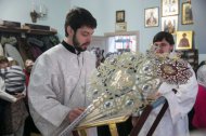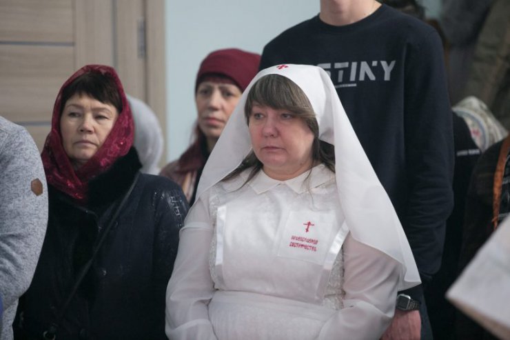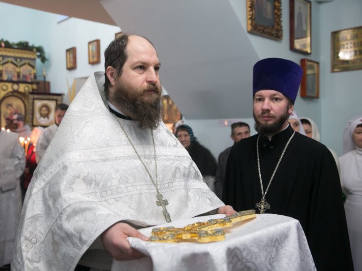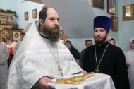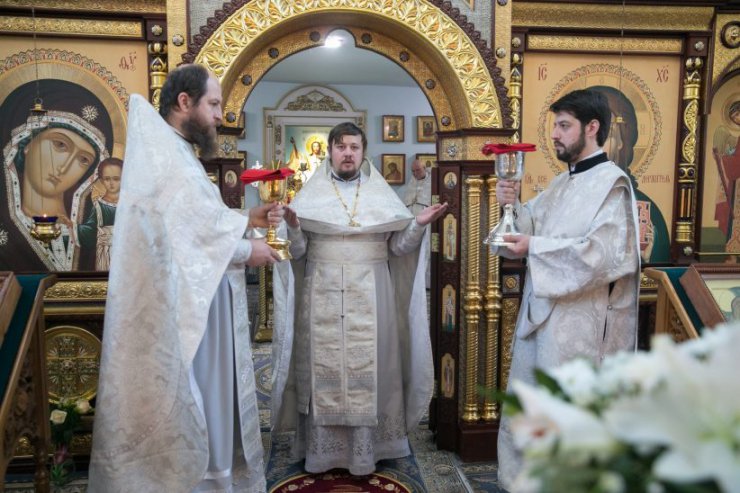 Его Высокопреосвященству сослужили: благочинный Ханты-Мансийского благочиния, протоиерей Кравцов Сергий, настоятель храма, иерей Бартков Леонид; заведующий епархиальной канцелярией, иерей Нагорный Сергий; иерей Мемячкин Константин, иерей Борозенец Тарасий, диакон Матвеев Даниил, диакон Рассудов Иоанн