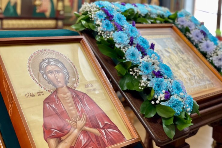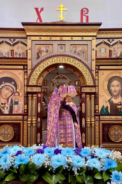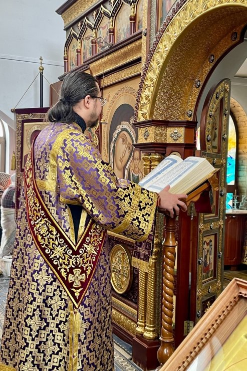 6 апреля 2025 года, в Неделю пятую Великого поста, преподобной Марии Египетской и день памяти преставления свт. Тихона, патриарха Московского и всея Руси, духовенством Знаменского храма в составе настоятеля иерея Леонида Барткова и клириков храма иерея Андрея Зотова, иерея Тарасия Борозенца и диакона Алексия Полянцева была совершена Божественная Литургия.