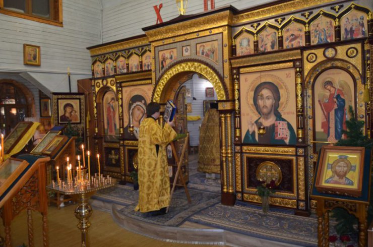 В ночь с 31 декабря на 1 января в храме в честь иконы Божией Матери «Знамение» г. Ханты-Мансийска была отслужена Божественная Литургия, посвященная Недели перед Рождеством Христовым, святых отец.