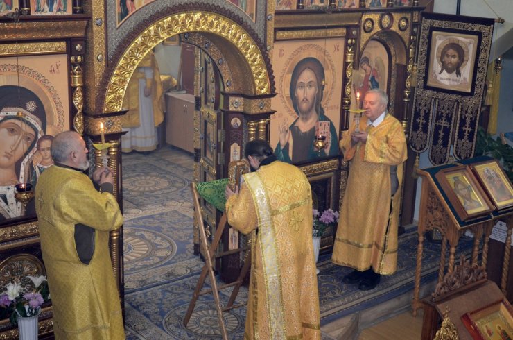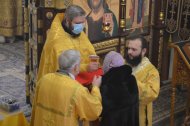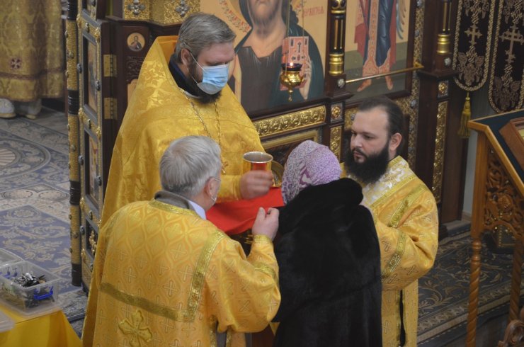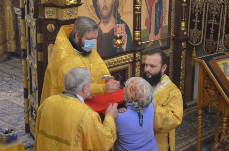 Божественную Литургию возглавил настоятель храма иерей Леонид Бартков. Его Преподобию сослужили клирики храма: иерей Андрей Зотов, иерей Константин Мемячкин, иерей Тарасий Борозенец, диакон Александр Фокин.