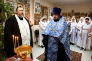 18 октября 2016 года в часовне состоялся водосвятный молебен с чтением Акафиста преподобномученице Елизавете. По-особому торжественно звучали, по окончанию молебна, слова проповеди председателя отдела социального служения и благотворительности Ханты-Мансийской епархии иерея Леонида Барткова: « Важно, чтобы дело милосердия, которому служат сестры, послужило во спасение не только их душ, но и во спасение тех, кому они помогают в больнице». Несомненно, дело милосердия требует личных усилий и самоотвержения. И для священников, которые все эти годы окормляют больных, и для самих сестер милосердия, которые в современном мире, нередко преисполненным злом, стремятся показать иной пример: жертвенности и любви. Как говорил иерей Леонид, не Господь созидает зло, сами люди его творят. И лишь, обращаясь к Богу, человек внутренне преображается. Иисус Христос сам дал нам пример любви и сострадания. И путь служения ближнему – это путь, который научает любви.