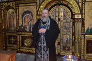 Его Преподобию сослужили клирики Знаменского храма: иерей Андрей Зотов, иерей Константин Мемячкин, иерей Тарасий Борозенец.
