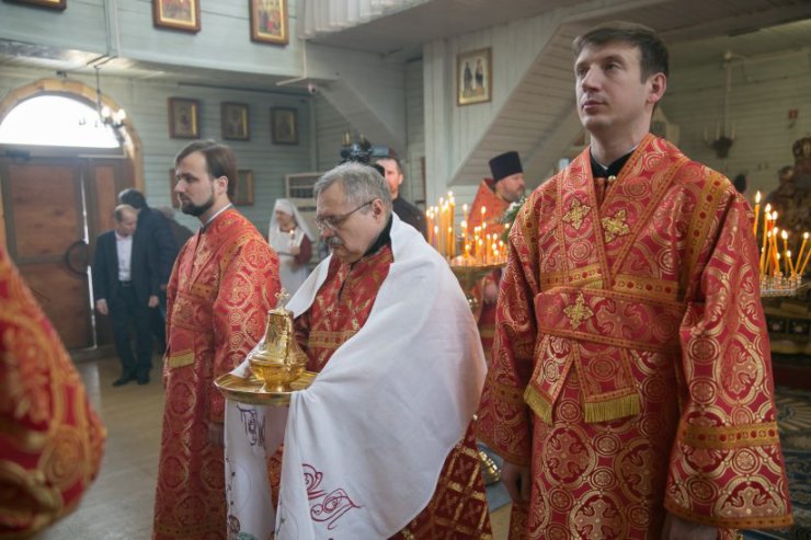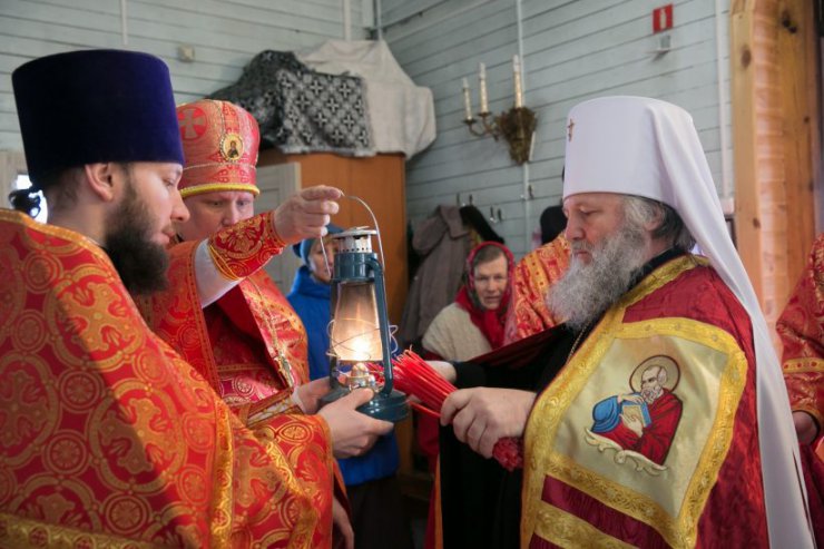 Его Высокопреосвященству сослужило духовенство Ханты-Мансийского благочиния: благочинный Ханты-Мансийского благочиния, протоиерей Кравцов Сергей; настоятель храма, иерей Бартков Леонид; иерей Мемячкин Константин, иерей Василенко Владимир, иерей Нагорный Сергий, иерей Кизин Евгений, иерей Белянин Григорий, иерей Набоков Евгений, диакон Матвеев Даниил, диакон Борозенец Тарасий.