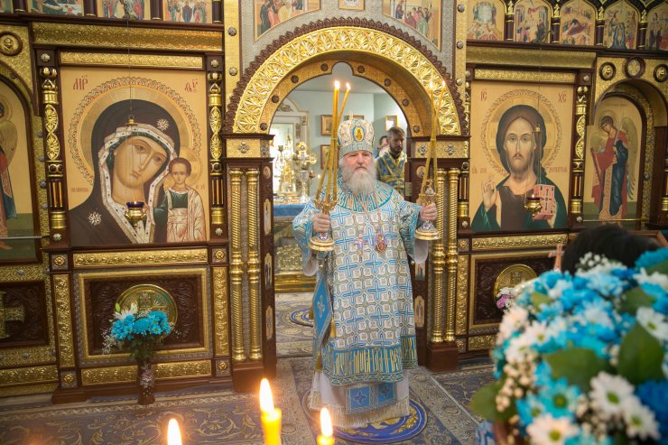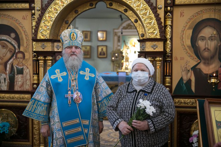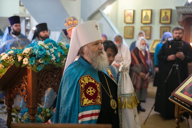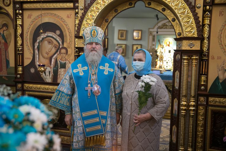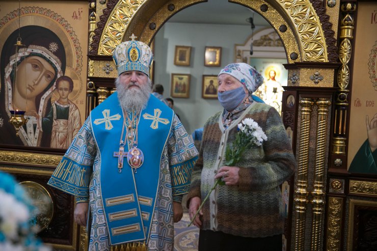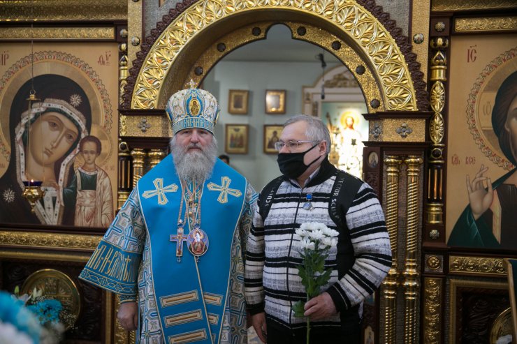 После богослужения митрополит Павел обратился к собравшимся: «Дорогие отцы, братья и сестры, позвольте от сердца, от души, поздравить с престольным праздником, можно сказать, нашего города, ибо икона Божией Матери «Знамение» пребывала очень давно на нашей земле, в храме Покрова Пресвятой Богородицы села Самарово. Более 100 лет образ Знамения Божией Матери находился в Покровском храме, оставшись там волею самой Владычицы, ибо икона, которая следовала в Иркутск, не смогла из- за сильнейшей непогоды покинуть Самарово. Образ пребывал в храме вплоть до его разрушения, и никто не знает сегодня где находится икона. Период безбожия прошел, и новой страницей возрождения православия в Ханты-Мансийске стал этот храм, который и посвятили иконе Божией Матери «Знамение». Матерь Божия сама избрала этот град. Четверть века назад этот храм был построен жителями этого города и освящён. Царствие Небесное всем, кто строил этот святой храм! С него началось возрождение духовной жизни в нашем городе. Мы видим, как за 25 лет изменился облик не только нашего города, нашего округа, и не случайно день округа отмечается в день Знаменской иконы Божией Матери. Сегодня отмечается 90 лет образования нашего округа-Югры.Хотел бы от сердца, от души, поздравить всех с юбилеем храма, с юбилеем округа, пожелать всем крепости сил и здравия в это непростое время пандемии, когда мы изменяемся и внутренне и внешне.