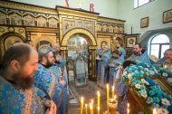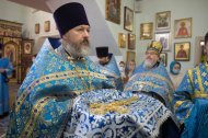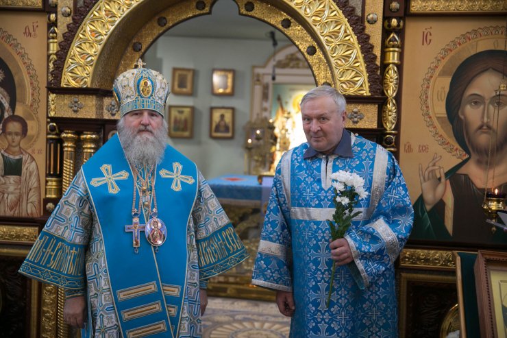 Его Высокопреосвященству сослужили: благочинный Урайского благочиния Югорской епархии протоиерей Иоанн Юрцун, благочинный Ханты-Мансийского благочиния протоиерей Сергей Кравцов, настоятель храма иерей Леонид Бартков, секретарь управляющего епархией иеромонах Антоний (Кирпичев), иерей Виктор Мурзаков, иерей Александр Власкин, духовенство храма. Диаконский чин возглавил диакон Даниил Матвеев.