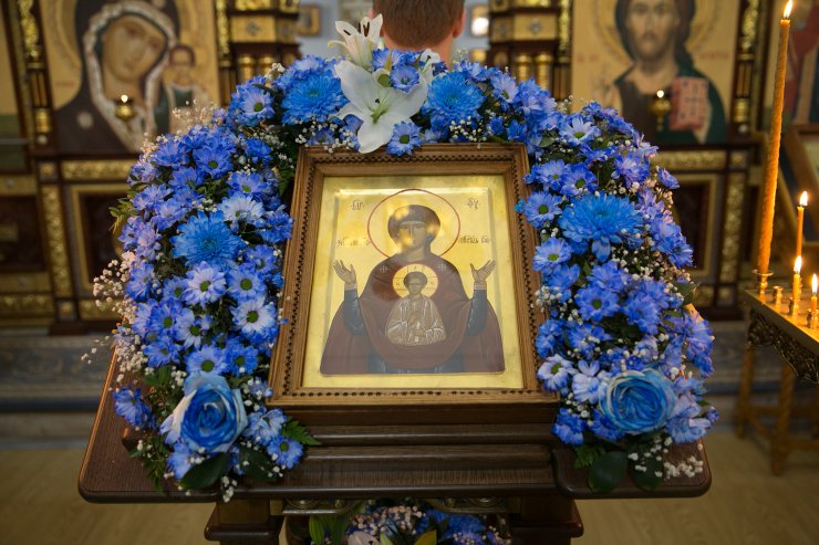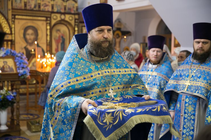 «Дорогие отцы, братья и сестры позвольте поздравить всех с престольным праздником этого святого храма, который посвящен иконе Божией Матери «Знамение». Сегодня 91-ая годовщина рождения нашего округа, а икона «Знамение» Божией Матери имеет особую значимость для города Ханты-Мансийска. В 1747 году эта икона направлялась в Иркутск, но не смогла покинуть в то время село Самарово. Обстоятельства сложились так, что непогода, сильный ветер и дождь не позволили путникам, сопровождавшим икону, продолжить своё путешествие и образ Божией Матери решено было оставить здесь. Матерь Божия избрала это место своим уделом, но к сожалению, мы не знаем, где находится сейчас первообраз этой иконы. Мы возносим сегодня благодарение Господу и Царице Небесной, что она является нашей покровительницей, и уже возрождая здесь православие, был построен этот святой храм, посвященный иконе Божией Матери«Знамение». Дай Бог, чтобы Царица Небесная хранила всех живущих в этом городе, помогала бы каждому из нас нести свой земной крест. Будем просить и молить, чтобы она не оставила нас в эти непростые времена. Храни всех Господь!»